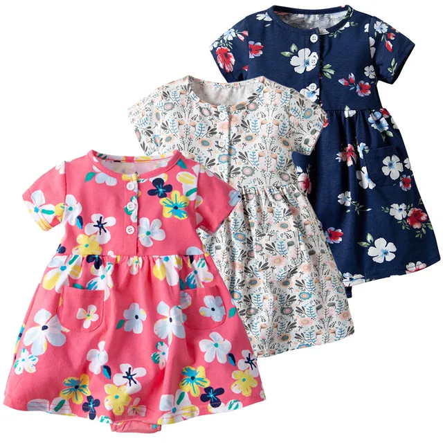 Toddler Kids Baby Girl Short Sleeve Floral Dress Summer Loose Cotton Princess Romper Dresses sundress infant girl Clothes