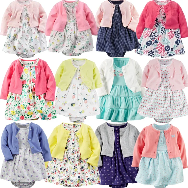 Baby Girl Bodysuit Dress Cute Soft Cotton Long-Sleeved Cardigan +Short SLeeve Dress 2 Pieces Infant Toddler Girls Clothes Set