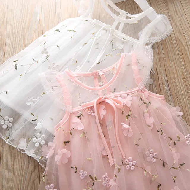 2019 ARLONEET New Summer Dress Mesh Girls Toddler Kids Baby Girl Solid Flower Casual Princess Party Dress Sundress Clothes Z0205